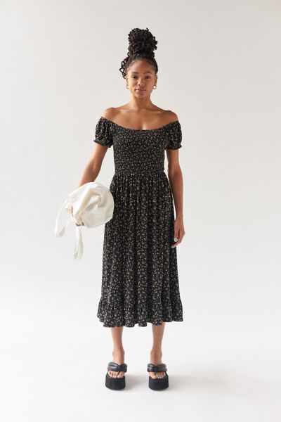 Uo Tessie Smocked Puff Sleeve Midi Dress Urban Outfitters